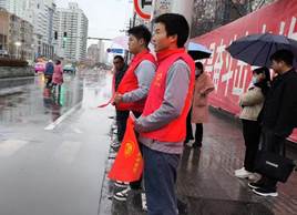 活动在主要交通路口设置九个志愿者服务点,进行定点值守,维护交通秩序。志愿者对不文明交通行为进行劝导,向过往行人宣传交通安全知识、普及常见的交通安全指示标志,引导市民自觉遵守交通法规,做文明交通的践行者。同学们通过活动更深刻地体会到了交通安全知识宣传的必要性,用微笑和爱心维护了安全有序、文明畅通的道路交通环境,践行“奉献、友爱、互助、进步”的志愿者精神。