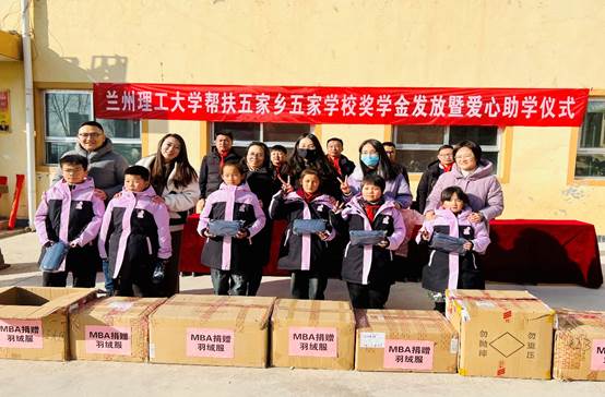来自全国各地的2021级MBA学员为东乡县五家公司的96名留守、单亲和孤儿捐赠羽绒服96套,给孩子们带去了羽毛球拍、篮球等体育用品,用行动温暖孩子们的心,助力乡村学子筑梦起航。