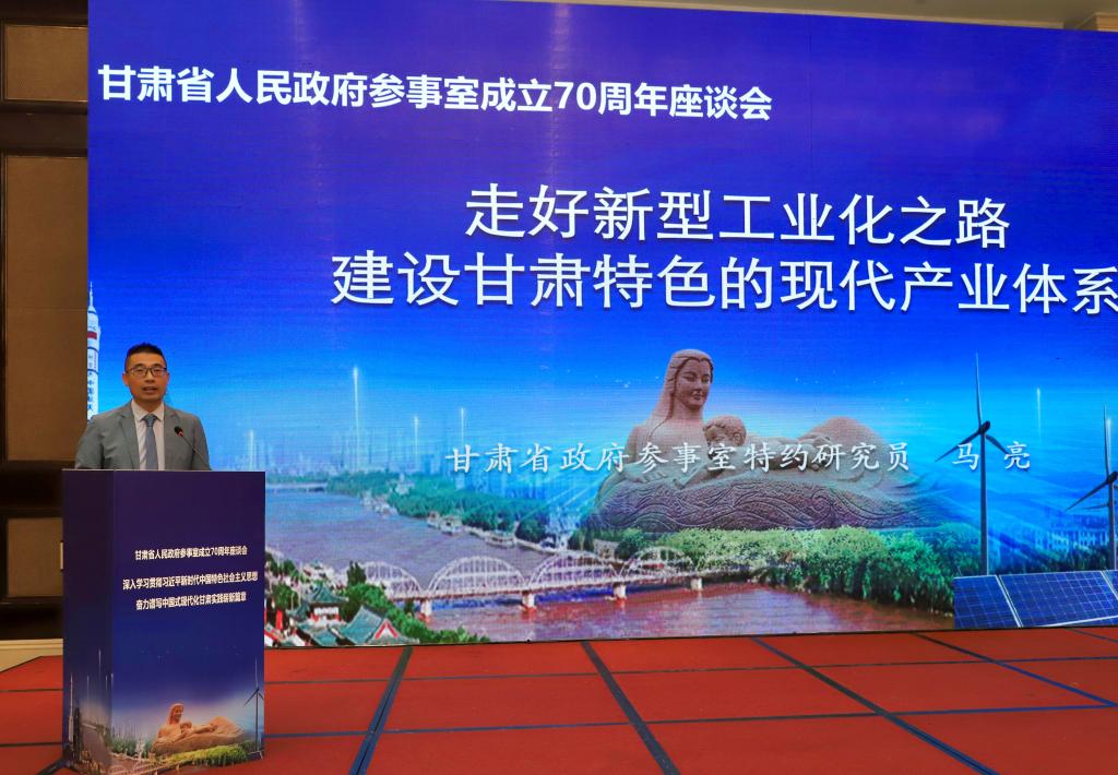 2023年9月26日-27日,甘肃省人民政府参事室成立70周年座谈会在兰州召开,省委常委、常务副省长程晓波,国务院参事室相关负责人出席座谈会并致辞,19个省(区、市)政府参事室负责人、参事、参事室特约研究员,甘肃省政府参事及有关方面参加座谈会。gg999策略手机白菜教师马亮、李鸿渐参加会议,马亮教授应邀作了题为“走好新型工业化之路 建设甘肃特色的现代产业体系”的主题报告。
