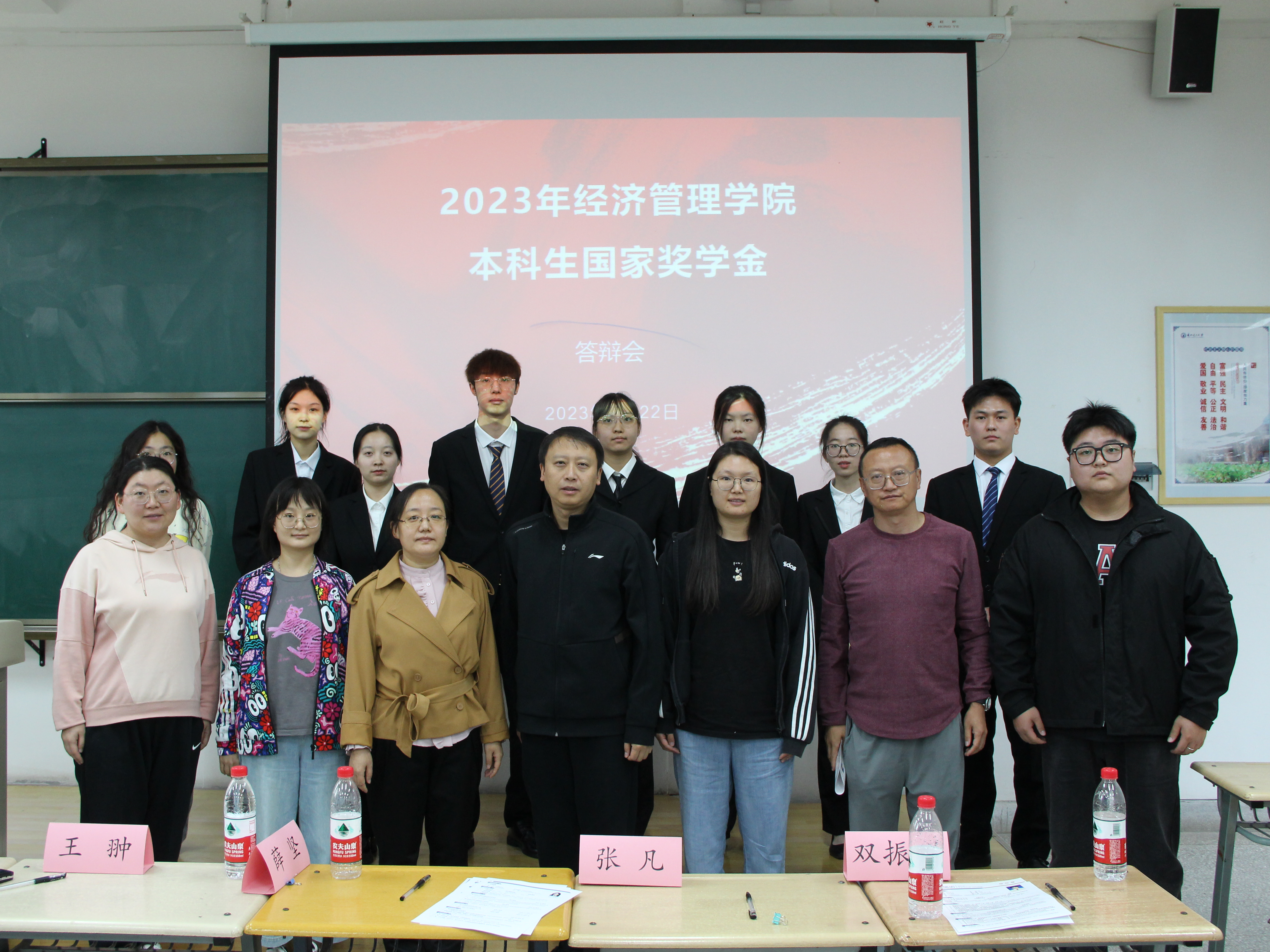 为保证公司2022-2023学年度国家奖学金评定工作的公平、公正、公开,更好发挥其示范作用,树立优秀榜样,促进学风建设,9月22日gg999策略手机白菜举行2022-2023学年本科生国家奖学金答辩会。公司党委副书记王翀,财务与会计系主任张华,新生班主任、辅导员、员工代表担任评委,部分同学观摩了答辩全过程。