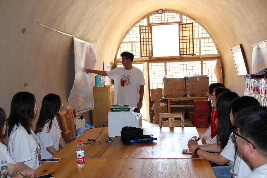 图为指导老师在杨家岭革命旧址为队员讲解七大精神