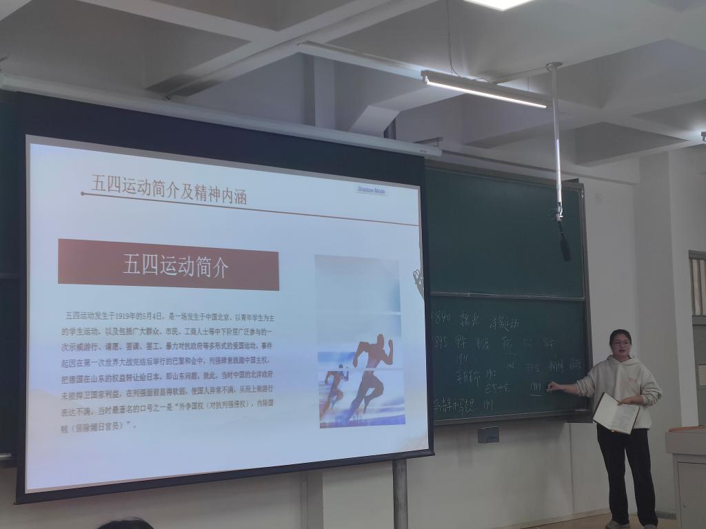 活动伊始,许丹简述了五四精神的时代内涵和具体内容,用生动真切的语言向同学们阐述出了我国那段艰辛的历史进程。紧接着主持人通过一个个真实的历史故事向我们诠释五四运动其所孕育的爱国精神和先辈们不畏强暴的民族内涵,并通过历史的回顾来号召我们当代青年提升自我。许丹表示希望同学们坚持弘扬五四精神,做心怀大爱,有理想的青年。最后,全体人员起立,在主持人的带领下重宣入团誓言,唱共青团团歌,声声铿锵,字字坚定。激励青马学员团结进取,勇于拼搏,勇于创新共同投身于中国特色社会主义伟大实践中。