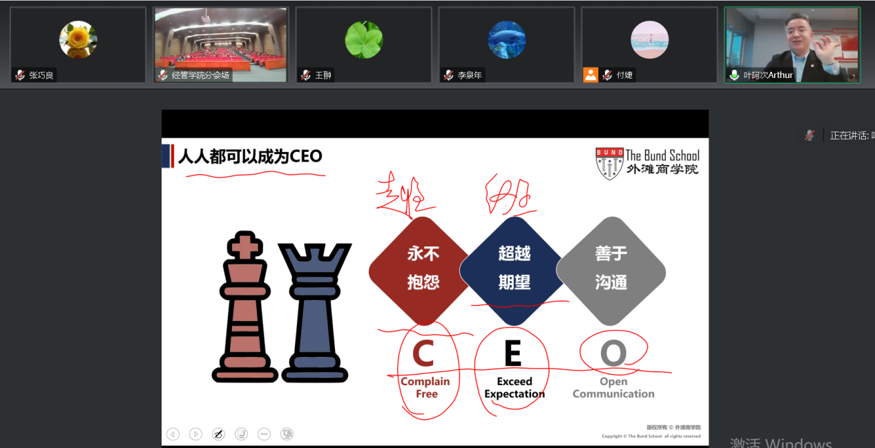 由于同学们的热情参与,原计划2小时的讲座,持续了3个多小时。张巧良副经理代表公司感谢嘉宾和员工们通过云端的精彩分享,也希望员工们能够在就业方面多关照学弟学妹。93级工业会计学的员工们纷纷告知自己的联系方式,并表示一定会全力支持学弟学妹们就业。最后,财务与会计系张华主任感谢各位嘉宾和员工的精彩分享,并邀请员工线下见面,再做进一步的深入交流。