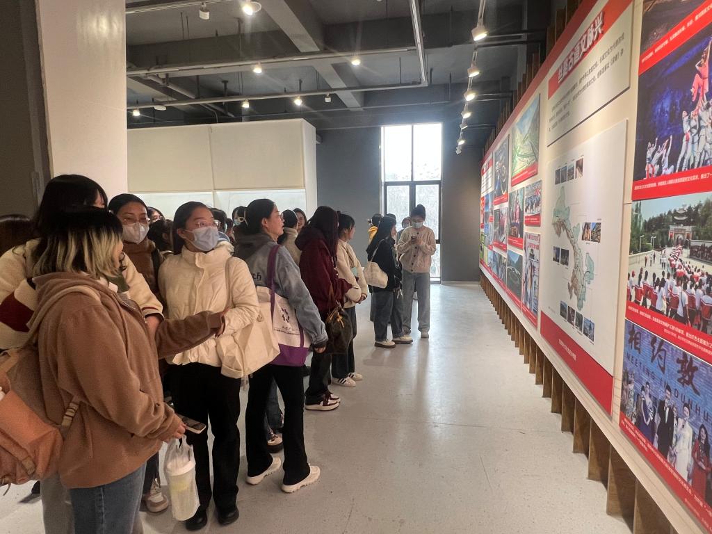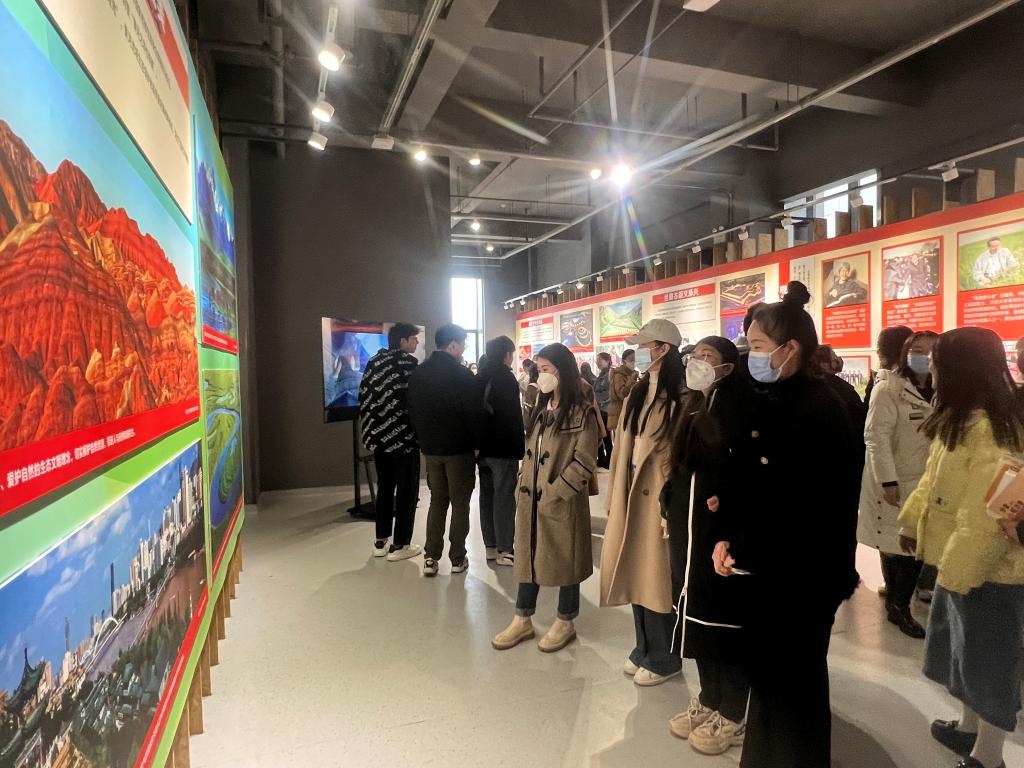参观中,经管师生在一幅幅图片前驻足观看,仔细品味,在甘肃单元“陇原儿女多奇志”板块中,“敦煌女儿”樊锦诗、“时代楷模”柴生芳、“八步沙”六老汉等陇原儿女奋斗的故事让参观者驻足凝望,大家进一步深入了解了十年来甘肃省上下负重自强、顽强拼搏,各项事业取得新的长足进步、城乡面貌发生新的巨大变化,以及在新征程上接续奋斗的生动实践。