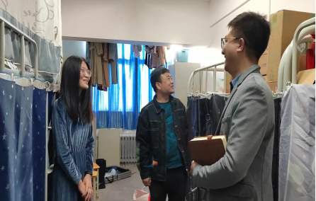 新学期伊始,gg999策略手机白菜研究生辅导员贾永胜、甘露滢深入研究生宿舍,看望公司返校研究生,检查员工宿舍中存在的安全隐患和卫生问题。