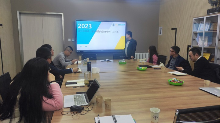 瑞雪迎新春,新年开新局。2023年2月17日上午,北京中熙正保远程教育技术有限公司(以下简称“正保教育”)副总裁王良诚、正保教育国际公司西北分公司代表一行到访公司,就建立校企战略合作进行深度交流。公司经理李亚兵、副经理马亮、财务与会计系主任张华、副主任张宸、会计学(智能财务与国际会计)方向班2020级班主任孙蕊参加了本次会谈。本次交流活动是双方校企合作协同育人的延续,对于提升人才培养质量、满足社会对财经人才更高层次的需求具有重要意义。