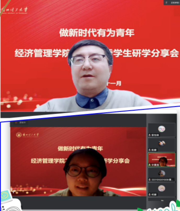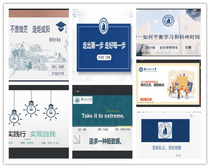 各位分享同学从学术研究、社会实践、综合素质提升、人际交往、情绪调整等各方面结合自己的特长进行了分享。为低年级员工顺利过好研员工活提供的借鉴之术。裴倩雯同学说,专业型硕士更加偏重实践,注重理论与实践相结合。因此我们进行学习要以职业需求、实际应用为导向。丁亚楠同学说,接受你不能改变的,改变你可以改变的,我们要接受现状,少抱怨、少焦虑,将时间投入到学术研究上,注重内心的丰满。陈娜同学分享了研究生三年的学习科研经历以及竞赛经验,并指出我们要做到可持续发展的极限,保持身心健康,以积极的心态面对挑战,对自己负责,自主学习,做到创新与突破。郭怡琳同学对于确定研究方向、投稿、审稿以及简历制作进行了详细分享,推荐了一些学习网站和软件,并指出我们要把握当下,提高核心竞争力,规划目标,脚踏实地得进行学习和科研。王绪海同学分享了自己的研究生阶段目标,详细介绍了考博申博、考公考编、找工作以及毕业条件的内容,推荐了投稿相关的公众号,并具体分析了研究生不同阶段应做的事情。刘菁同学建议从德智体美劳各个方面发展自己,以及在自我管理、研究培养方案、践行综测细则、平衡科研和学习时间五大方面分享了宝贵经验。参会同学积极反馈,分享会收获颇多。