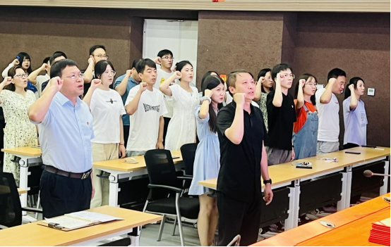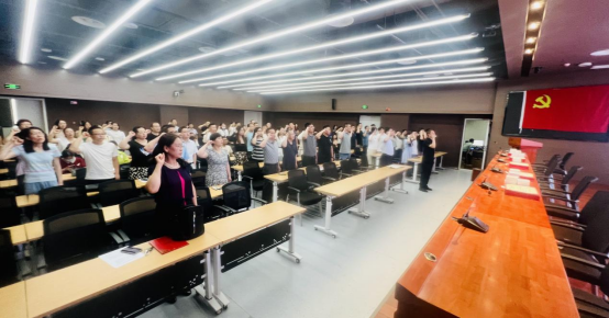 会议在庄严的国歌声在中拉开序幕,党委副书记王翀同志带领全体党员同志重温入党誓词,预备党员面向党旗庄严宣誓。