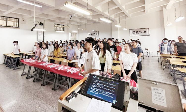 会上,参会师生观看了习近平总书记在庆祝中国共产主义青年团成立100周年大会上的讲话。
