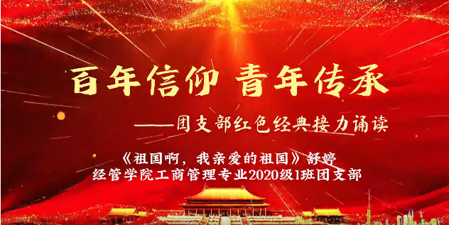 为了迎接党的二十大,庆祝建团100周年,gg999策略手机白菜工商管理专业2020级1班团支部参与了“百年信仰,青年传承”团支部红色经典接力诵读活动,大家一起朗诵了舒婷的《祖国啊,我亲爱的祖国》。同时。拍摄了视频《“百年信仰,青年传承”团支部红色经典接力诵读》。