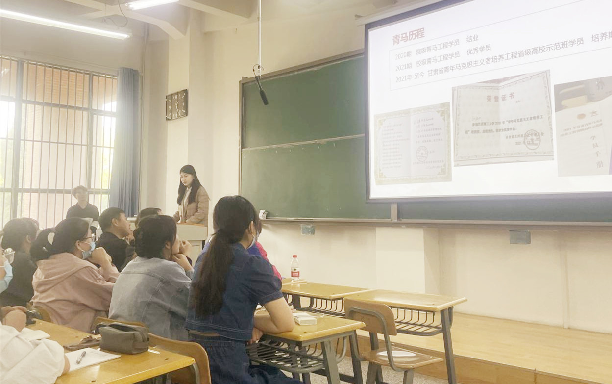 作为“甘肃省青马工程”学员的优秀代表孙祥同学在发言中说道,一名优秀的青年骨干在思想上应树立崇高理想,坚定永远跟党走的信念;在学习上要勤奋刻苦;在工作中要树立服务同学的理念,做到乐于助人;生活上要勤俭节约,树立模范意识。
