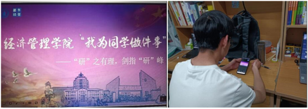 活动中,公司研究生学长学姐分别结合自己的考研经历详细地给同学们解读了读研的必要性,以及在备考期间应注意的一系列重要问题,包括考研流程、如何选择考研公司、复习科目侧重划分、如何选择考研资料等,重点强调了同学们最关心的复试调剂和各科的复习方法,告诫同学们一定要合理安排好学习计划,协调好学习与作息的规律。活动最后,辅导员贾永胜对同学们提出了殷切的期望,他提到,考研是一件终身受用的事情,在增长见识的同时还可以遇到更多有意义的人和事,希望同学们在大学四年里不负韶华、剑指巅峰。