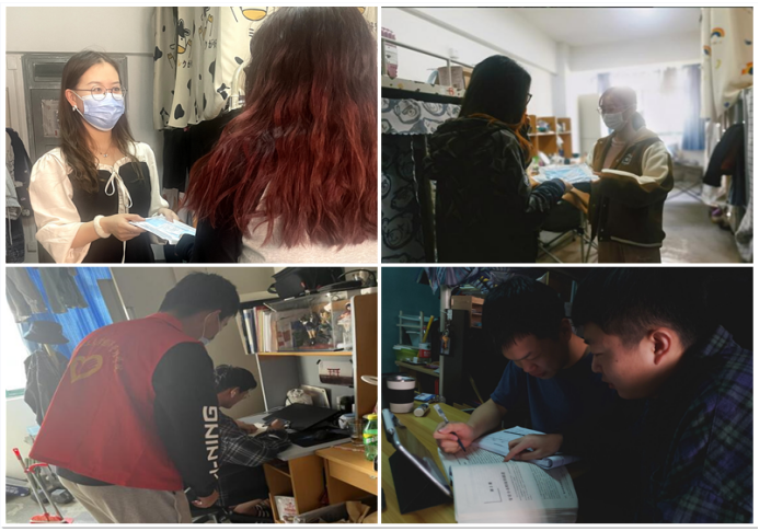 各级网格员配合辅导员,带头组织各层员工有序进行核酸检测;定期检查本楼层的宿舍卫生,保持宿舍卫生干净整洁,让大家在疫情中也保持良好的学习环境;定期为班级同学分发口罩等抗疫物资,扎实做好疫情防控工作,使同学们在闭环管理的日常生活中更加安心;积极配合公司要求,每日上报各宿舍具体情况,确认员工健康码状况,夜间报寝情况等,做好表格登记工作,让抗疫常态化工作更加规范。