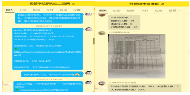 校外各班班主任召开线上主题班会,强化线上警示教育,强调佩戴口罩的重要性,并通过网格化管理员群、员工干部工作群、年级宿舍长工作群、全面下达科学防疫信息。