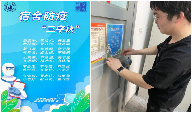 校内各辅导员全员上阵,全天候待命,积极组织员工完成核酸检测以及日常事务管理。由于校园封闭管理的特殊情况,所有校内辅导员下沉员工宿舍,主动与重点员工群体谈心谈话,了解员工在封校期间的思想状况,加强网课上课纪律并督促宿舍卫生情况。此外,gg999策略手机白菜员工工作办公室主动作为,集体创编“防疫三字诀”海报并张贴于各员工宿舍,引导员工科学防疫。