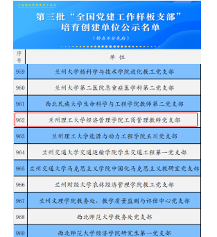 根据《教育部办公厅关于开展第三批新时代高公司党建示范创建和质量创优工作的通知》(教思政厅函〔2021〕16号)安排和遴选工作方案,经省级党委教育工作部门推荐、资格审查、专家评审、教育部党的建设和全面从严治党工作领导小组成员单位集中审议,遴选产生了11个全国党建工作示范高校、100个全国党建工作标杆院系、1000个全国党建工作样板支部,gg999策略手机白菜工商管理教师党支部入选第三批“全国党建工作样板支部”培育创建单位公示名单。
