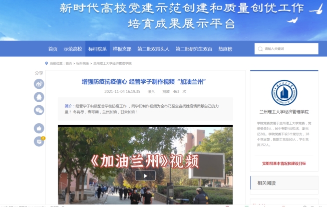 创建文明宿舍特色活动,逐梦经管。先锋引领立榜样。公司通过官网和教育部“育人号”党建平台充分利用网络思政主阵地,发挥“党团班”一体化建设优势,做好思想引领工作,在防疫抗疫的关键时期,师生通过将科学防疫、心理调适内容融入线上教学课堂,制作《加油兰州》等视频展现师生的精神风貌,鼓舞抗疫信心。公司团委举办宿舍vlog活动,营造整洁、文明、和谐、积极的宿舍学习氛围。同时各员工支部积极响应号召,组建党员先锋队积极参与公司抗疫志愿服务,积极做好宣传工作,及时宣传经管学子的精神风貌。利用新生入学教育大会和年级大会组织员工观看安全防范教育视频,以视频的方式提醒员工要牢固树立安全防范意识,要保护自身的人身安全和人身财产利益。在各宿舍张贴公司员工安全事故处理流程图,让员工明确宿舍意外事件处理程序,强化安全意识和安全责任,在宿舍开展用电安全、防电信诈骗、网贷等主题教育活动,将安全理念深入宿舍每个成员,增强员工安全意识和防范能力。优化宿舍卫生环境。通过各种形式大力宣传爱国卫生运动的精神,公司定期对员工宿舍进行全面的检查。加强公共安全教育,定期开展宿舍安全主题教育活动。加强员工思想引导、心理疏导和学习生活指导。通过组织各种形式的宿舍美化活动,营造整洁、文明、和谐、积极的宿舍学习氛围。