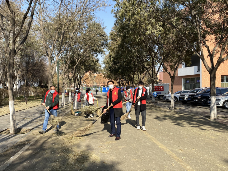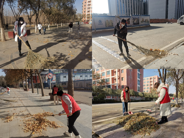 初冬的校园,因疫情防控减少人员流动而显得格外安静。各支部党员在各党支部书记带领下,身着志愿者红马甲,按照疫情防控要求佩戴口罩,在规定时间赶到指定地点集合,避免人员聚集,保持安全距离,迅速领取扫把、簸箕等劳动工具,按两个区域分工合作、分片作业,紧张有序地清扫校园主干道的落叶。党员充分发挥先锋模范作用,团结协作、互助进取,不怕苦不怕累,挥动着手中的扫把,拿着斗箕和扫帚,用手装积一袋袋落叶垃圾,美丽校园里闪现着同志们火红的身影,成为一道亮丽的风景线。从落叶堆积到街道无痕,清扫过校园街道变得清亮整洁。从穿戴整洁无暇到尘土汗水沾身,每一位同志在寒冷的天气中以一颗火热的心,为校园服务、为同学服务。党员和入党积极分子求真务实的精神,努力干好实事,服务他人的精神境界也得到了进一步提升。