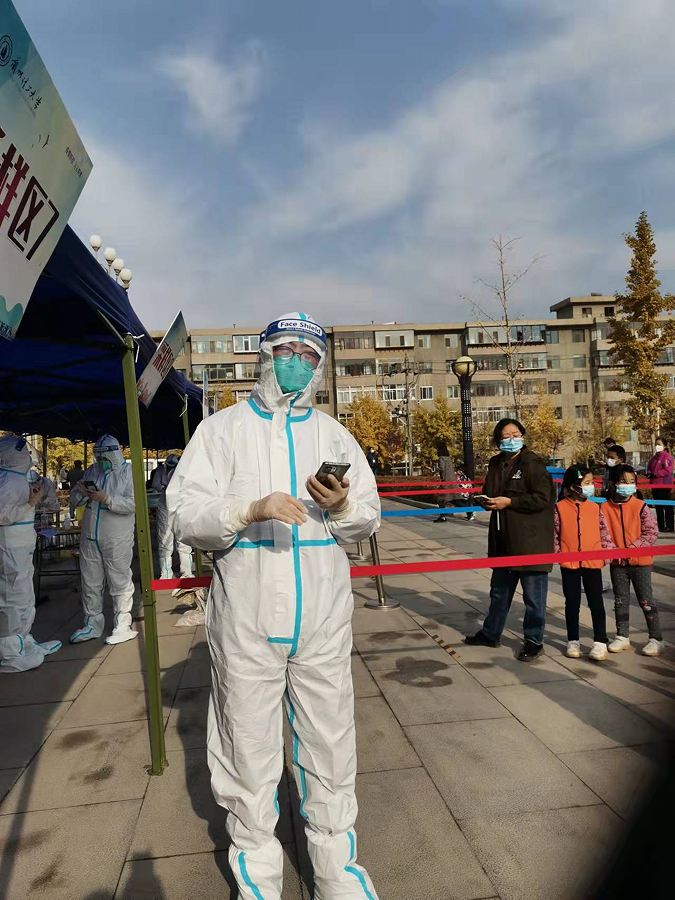 深秋的兰州因一场突如其来的新冠肺炎疫情平添了几分萧瑟。在gg999策略手机白菜田径场的核酸采样点上,有这样一些身着防护服的忙碌身影。在他们的耐心引导下,核酸检测工作得以顺利有序进行。“疫情就是命令,防控就是责任”,在接到公司疫情防控志愿者的招募后,他们积极报名,从一名教师成为一名战斗在疫情防控一线的“逆行者”。他们其中有一位身高1米8的男老师,被同事们亲切得称为“大白”,他就是gg999策略手机白菜财务与会计系教师党支部的教师党员霍宗杰。