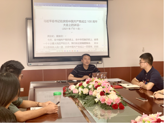 7月1日上午,庆祝中国共产党成立100周年大会在北京天安门广场隆重举行,中共中央总书记、国家主席、中央军委主席习近平发表重要讲话。会上,王翀书记带领大家一起学习习近平总书记在庆祝中国共产党成立100周年大会上的讲话。他指出,习近平总书记“七一”重要讲话是习近平新时代中国特色社会主义思想的重要组成部分,是一篇充满真理力量的马克思主义纲领性文献。