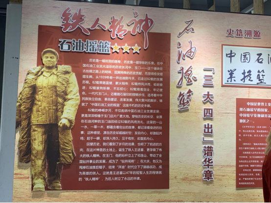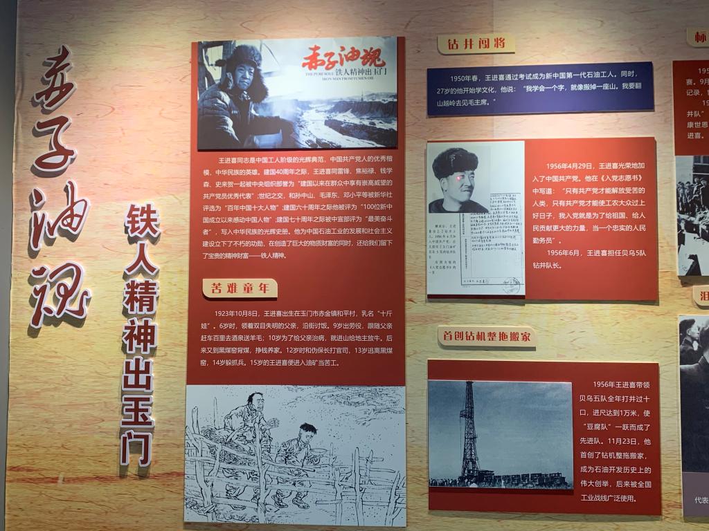 “石油摇篮铁人精神”主题展览分为石油摇篮--“三大四出”谱华章、赤子油魂--铁人精神出玉门两个篇章,是玉门石油发展历史及铁人王进喜精神的真实史料。