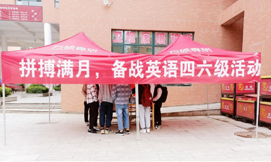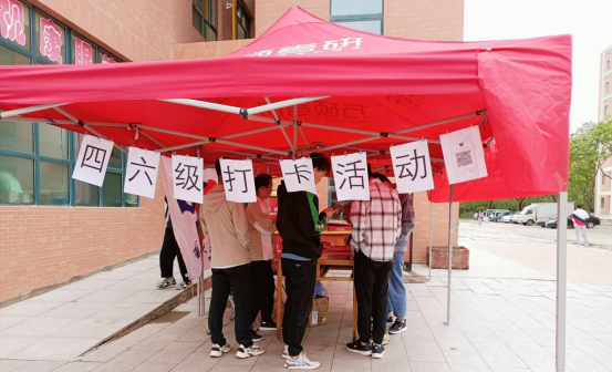 为了调动同学们准备英语四六级考试的积极性,提高同学们英语四六级考试的通过率和优秀率,同时为大家营造一个良好的学习氛围。2021年5月15日下午,gg999策略手机白菜团委组织部同新华珍珠爱心社在彭家坪校区红柳广场举行以“勤奋努力,追求卓越,稳过四六级”为主题的备战英语四六级打卡活动。