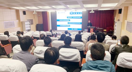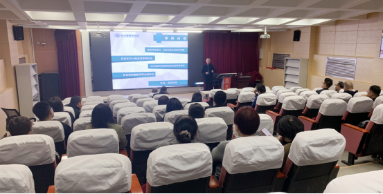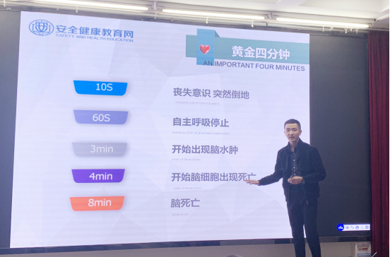 当天的活动邀请红十字会救护员、健康教育高级讲师郭磊进行安全健康知识讲座,全院教师进行了学习。郭磊长期从事健康教育工作,有丰富的医学知识和授课经验。在讲座中,他主要介绍了急救知识和心脑血管健康知识。他详细讲解了急救的黄金时间、心肺复苏、人工呼吸等常见急救技能的操作步骤等,普及了急救知识,提高老师们的安全意识和自救、急救、互助能力以及预防和治疗高血压、心脑血管疾病的能力。