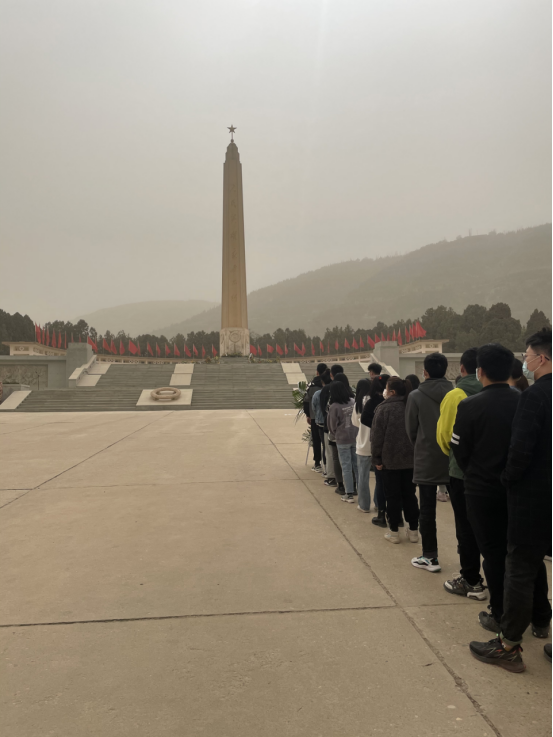 活动开始,全体同志在马少鹏老师的主持下对陵园全体烈士进行缅怀。在庄严的烈士碑下,支部党员重温入党誓词,师生通过敬献鲜花、鞠躬默哀等方式,表达对革命先烈无比的敬意和无限的哀思,悼念长眠于此的革命先烈。