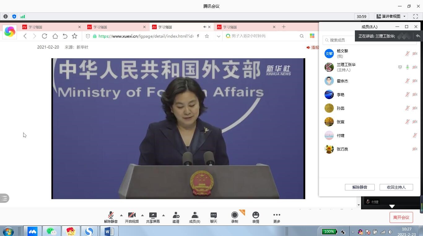支部党员观看《“清澈的爱,只为中国”,华春莹:祖国和人民不会忘记戍边英雄》