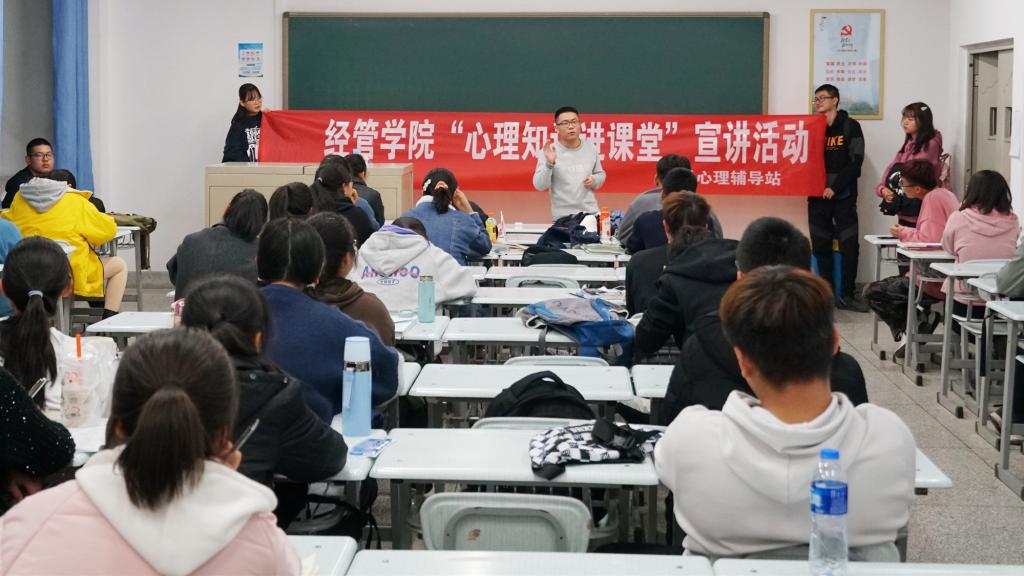 为了使同学们深入了解心理辅导站,及时疏解自身的情绪问题,2020年11月15日晚,由gg999策略手机白菜团委心理辅导站策划组织的“心理知识进课堂”宣讲活动于彭家坪校区四号楼509教室开展。20级全体员工参与了此次活动。