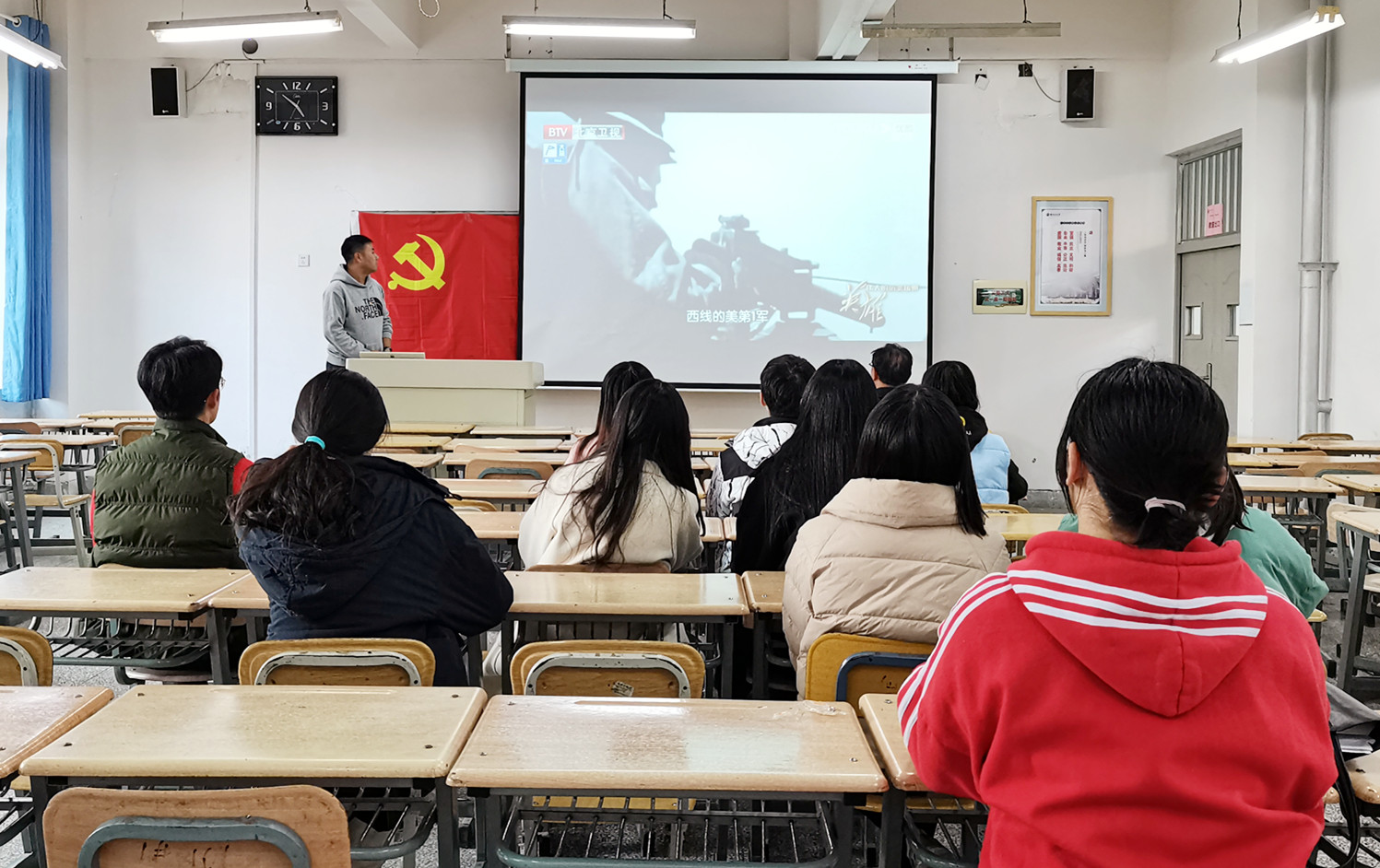 活动中播放了习近平总书记在纪念中国人民志愿军抗美援朝出国作战70年大会上的讲话视频以及采访参加抗美援朝老兵的回忆视频。一位抗战英雄讲述他们战时的状态以及深深的战友情,使党员们深受感动,是无数的革命者的奋不顾身和敢于牺牲才成就了今天祖国的繁荣昌盛,正如习近平总书记指出:“在波澜壮阔的抗美援朝战争中,英雄的中国人民志愿军锻造了伟大抗美援朝精神。伟大抗美援朝精神跨越时空、历久弥新,必须永续传承、世代发扬。”