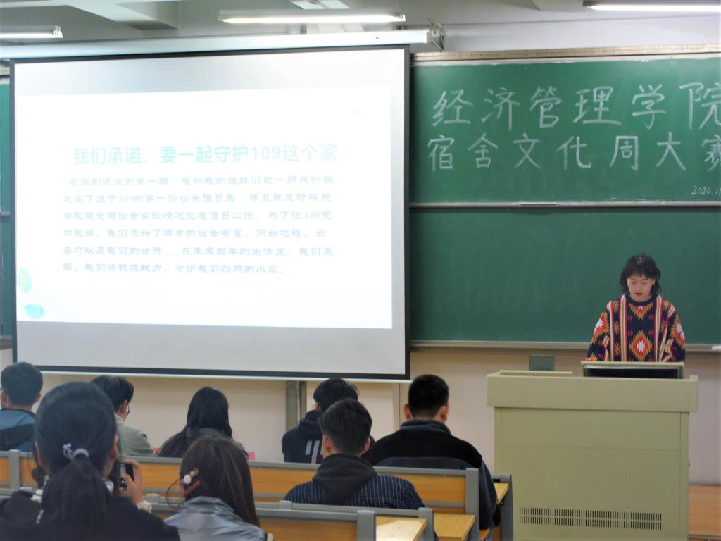 这次比赛分为宿舍陈述和答辩两个环节。陈述环节中,各宿舍代表借助ppt生动详细地介绍了各自宿舍的概况,并进行了宿舍才艺展示。一个个精心装饰的宿舍,一个个精彩的才艺表演,让大家眼前一亮。答辩环节中,各参赛选手针对评审团提出的问题进行答辩,并对评审团指出的安全隐患高度重视。随后,评审团给同学们分享了一些关于宿舍文化的见解,提出了更高的期望与要求。比赛的最后,北E409宿舍获得一等奖;南G220和南B619宿舍获得二等奖;北E413、南G107和南G109宿舍获得三等奖;南B609、南B610、南G115和南G119宿舍获得优秀奖。