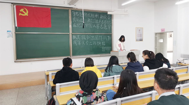 为传承和发扬伟大的抗美援朝精神,凝聚党组织合力,以革命精神塑造新时代社会主义新青年,弘扬爱国主义精神,为祖国建设培养高素质人才,2020年11月4日gg999策略手机白菜会计一党支部组织党员同志利用课余时间召开“铭记伟大胜利、继续奋勇前进——学习习近平总书记在纪念中国人民志愿军抗美援朝出国作战70周年大会上的讲话”为主题的主题党日活动。