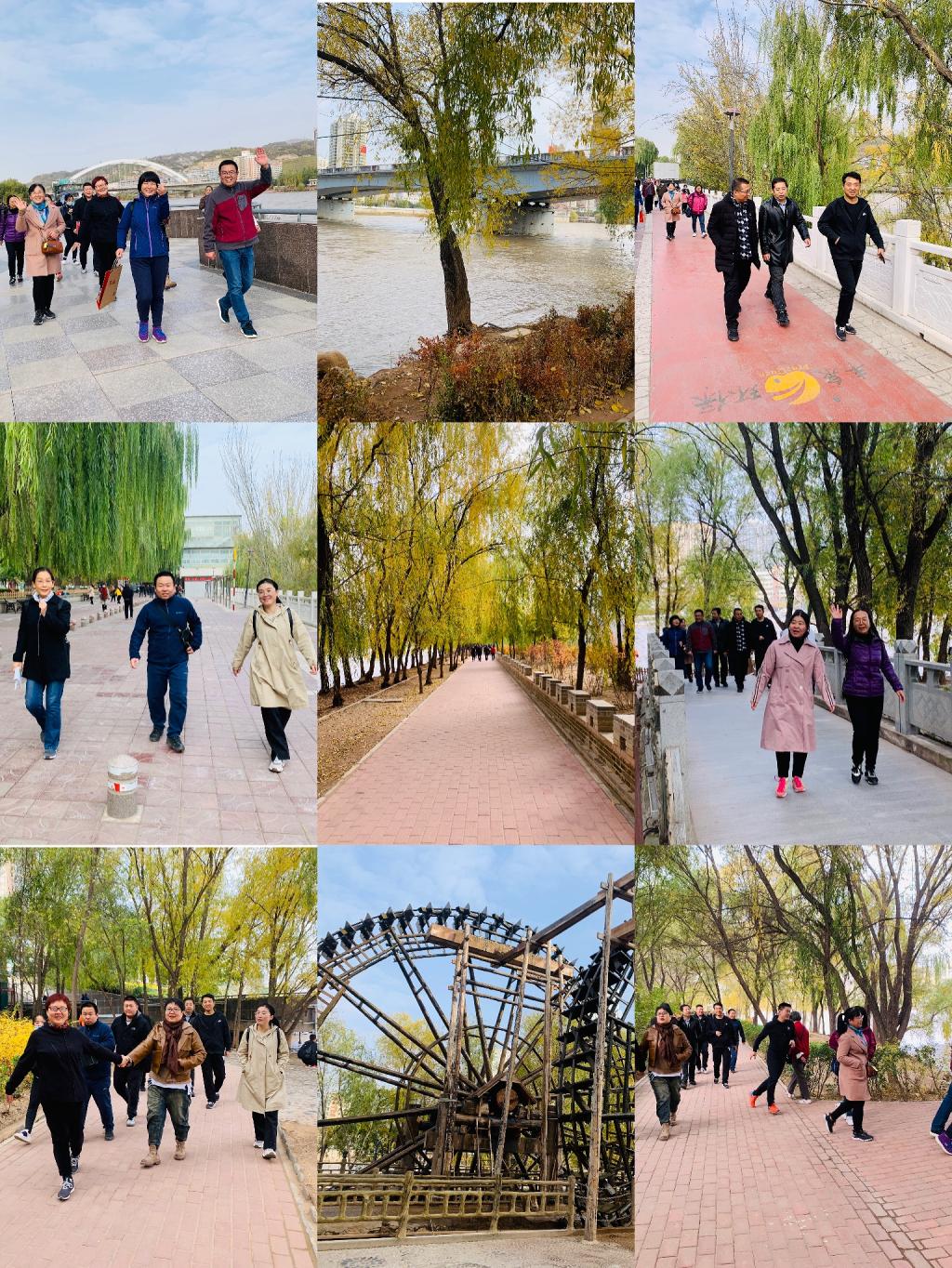 当天徒步路线为中山桥桥南广场到水车博览园。徒步线路设计涵盖黄河风情线各处景点,线路全程约5公里。在秋日的暖阳中,老师们精神抖擞、阔步向前,大家互相鼓励互相关心,氛围十分融洽,展示了团结奋进、积极向上的良好精神风貌。经过1个小时的行程,所有参与者都坚持走完了全程,感受秋日醉美风光,零距离体验黄河风情线的独特魅力。