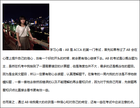 对于励志从事于智能财务与国际会计方向的同学,ACCA课程中AB科目的全球统考通过,也只是这万里长征的第一步,如何高效的学习并通过ACCA课程各个科目?如何跻身于优秀的ACCA会计师组织中?如何又将理想抱负化成一天天的小成就中?这里都离不开你们努力的痕迹。借李嘉诚的一句话,来勉励我们“年轻,是我们唯一拥有权力去编织梦想的时光。”最后愿会计学专业(智能财务与国际会计)方向班的同学们都能在国际财会领域找到自己的位置,得到属于自己的成就。