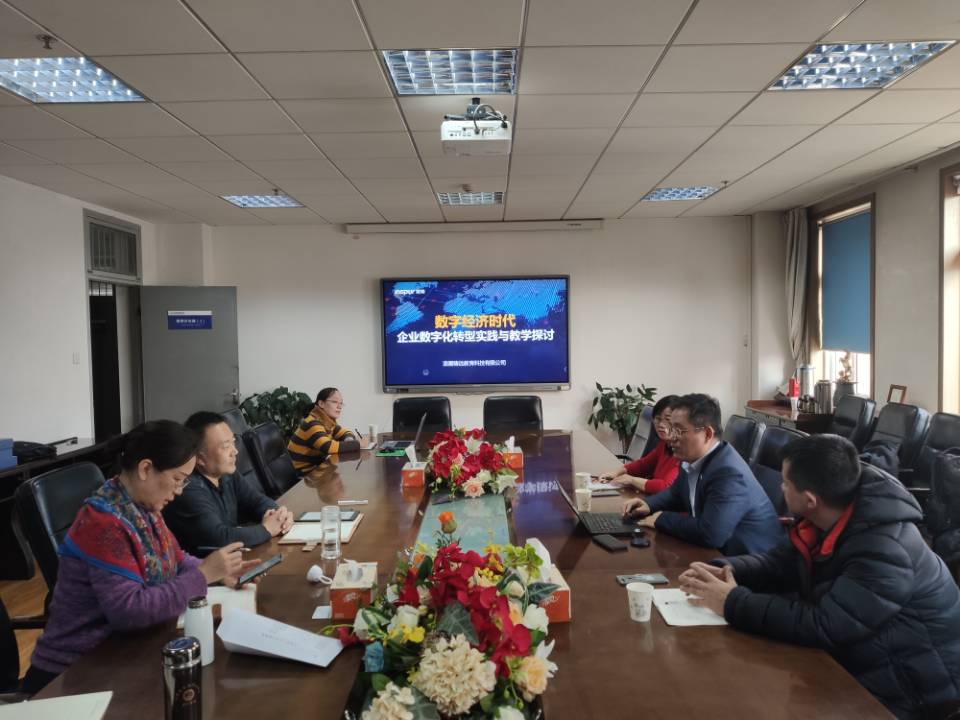 2019年12月24日浪潮集团马建军总经理一行3人来公司就大数据时代会计人才培养与公司进行了交流。公司经理张清辉、副经理张巧良、财务与会计系主任张华,及相关专业教师参加了此次座谈会。