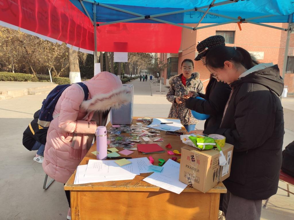 此次活动总共有三个模块:“测一测”心理小事、“说一说”互动留言板及“写一写”烦恼收集。在“测一测”的板块现场,可以看到同学们就学习、择业、交友、恋爱四个主题进行心理测试,在简单有趣的问答中进一步的了解自己。一旁“说一说”的板块中,同学们预先在留言板上写下自己的心愿、想说的话等等,随后工作人员将随机抽取一些小愿望帮助同学们实现。在“写一写”的板块中,同学们可以偷偷写下自己的心事、小烦恼,放入“烦恼箱”。希望得到解答的同学们将留下联系方式,活动过后团委心理辅导站将通过连线电话、发送短信等方式给予同学们有效意见。